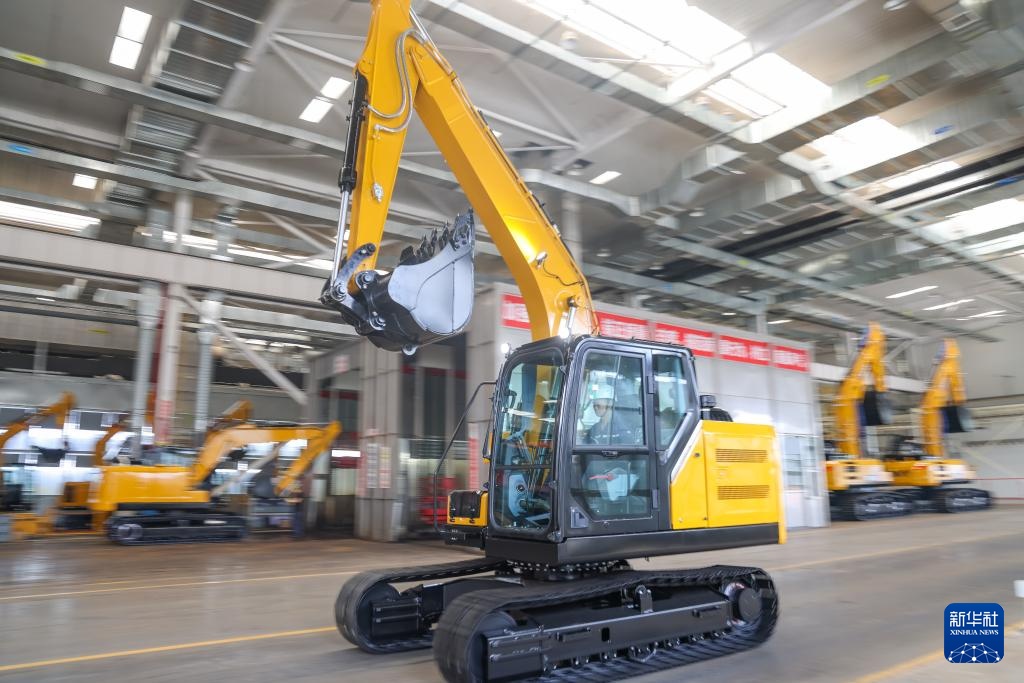 2025年4月21日,在位于重庆市两江新区的一家机械制造企业,调试合格的挖掘机驶下清洗线,等待发往老挝、缅甸。